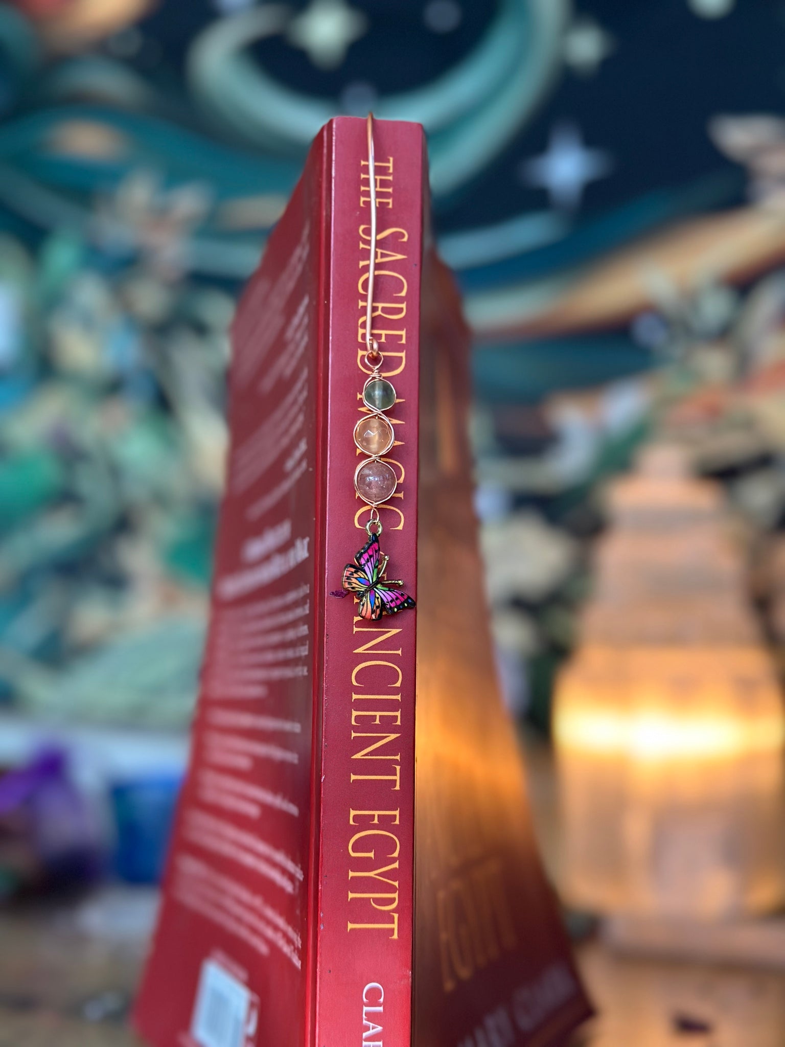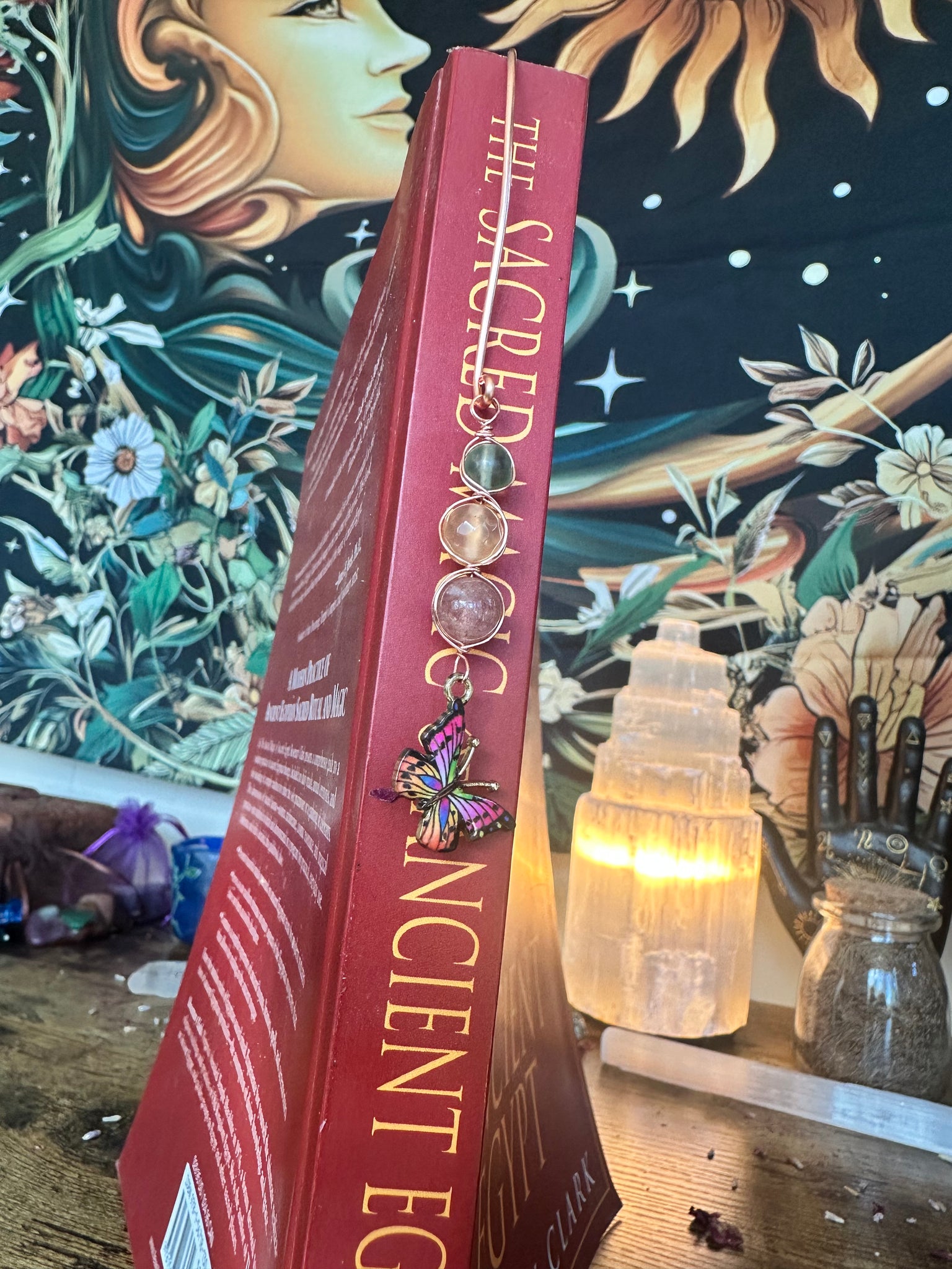A bookmark for creativity, joy, and mental clarity. Strawberry Quartz uplifts the mood, Orange Calcite fuels inspiration, and Green Fluorite sharpens focus and helps clear mental fog.
