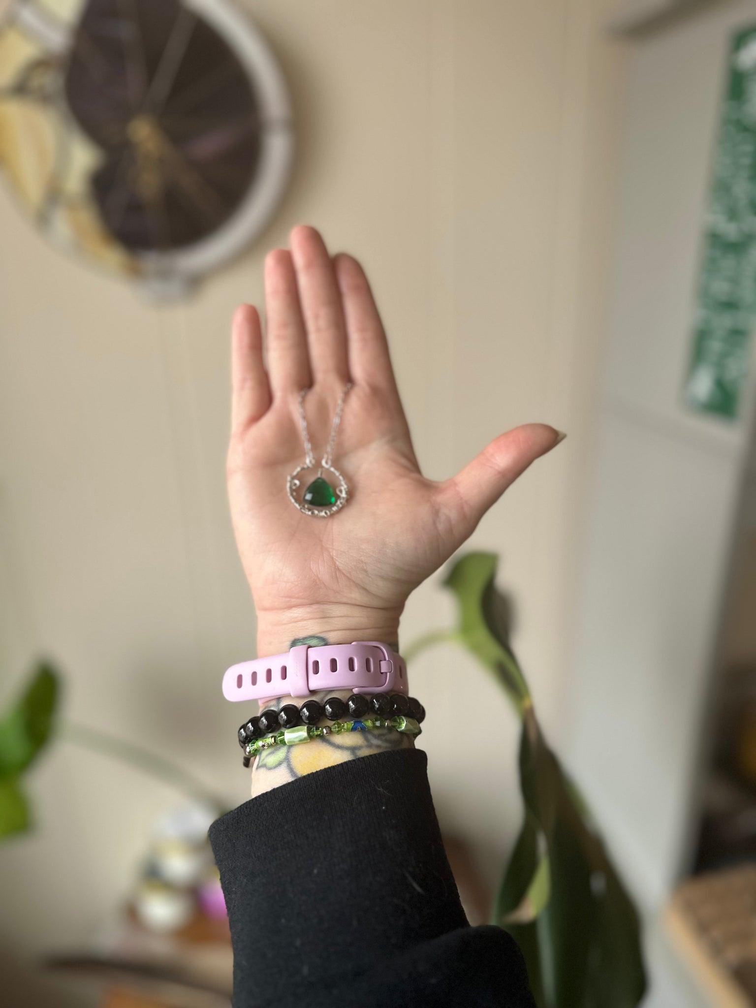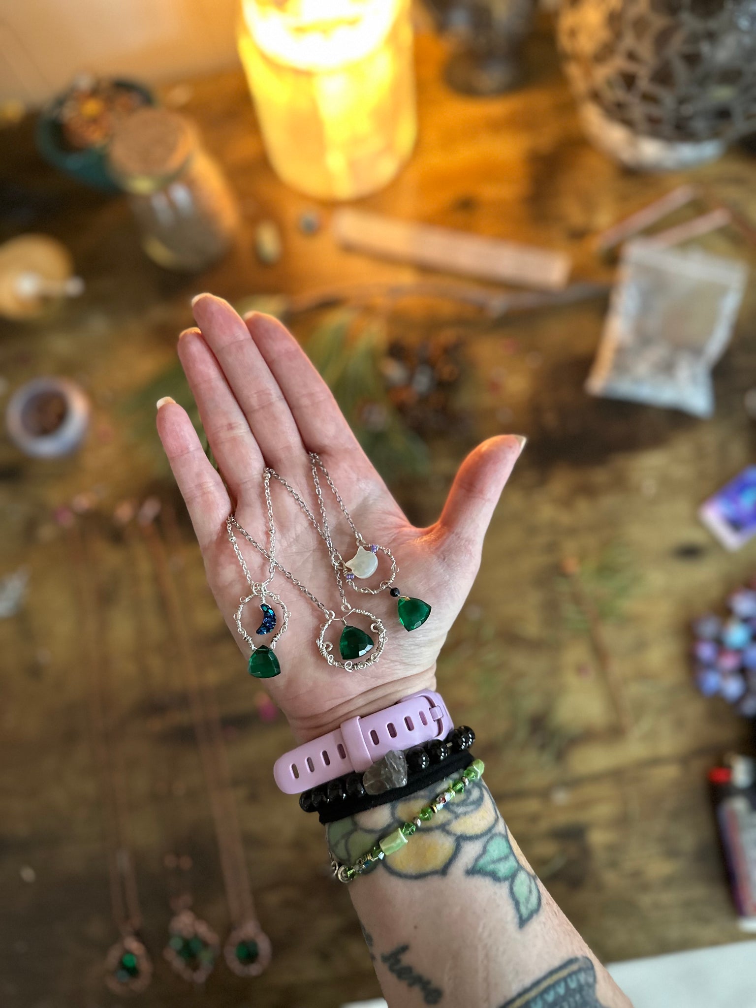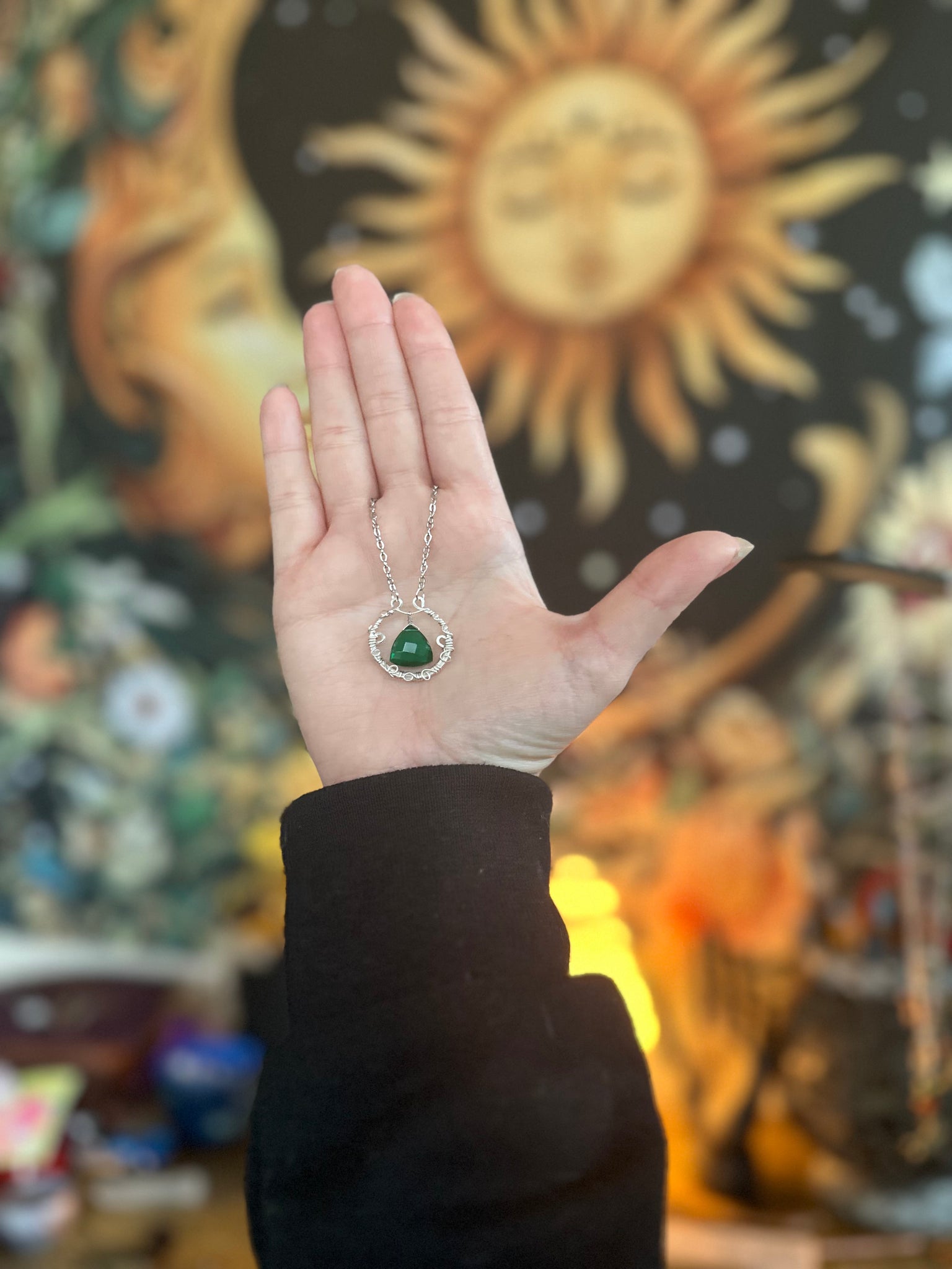 Simple, powerful, and deeply intentional. This sterling silver necklace showcases a glowing emerald encircled by sacred spiral detailing, symbolizing growth, love, and energetic protection. Emerald has long been revered for opening the heart chakra and attracting prosperity while maintaining emotional balance.